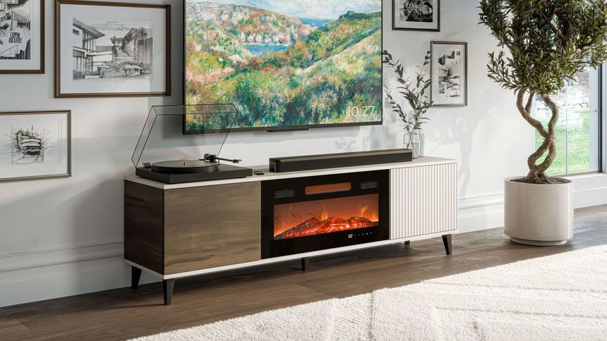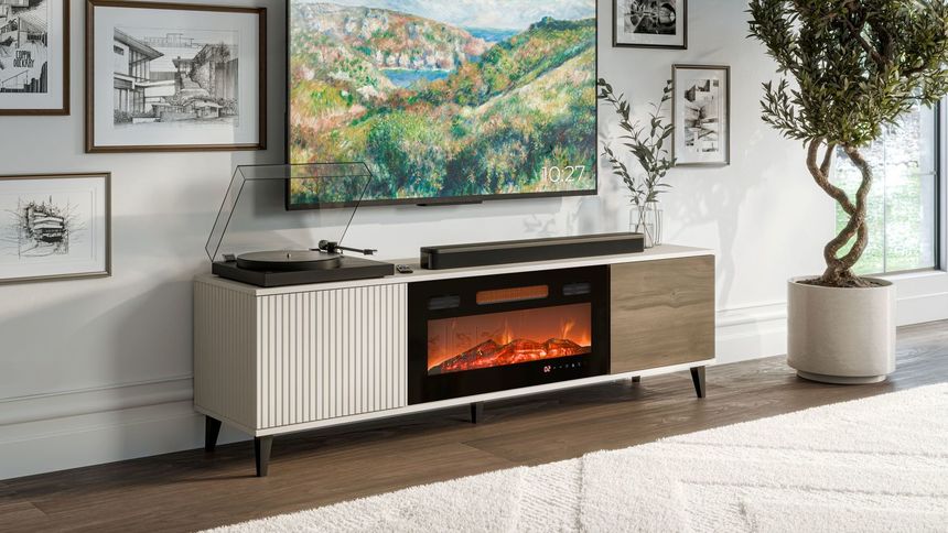 RANDOM 2 RTV-K stolik RTV 180 cm z kominkiem kaszmir / orzech / czarny (3p=1szt)