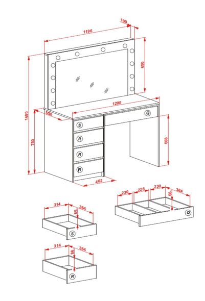 toaletka, wymiary: 120/55/140 cm, materiał: płyta meblowa okleinowana / oświetlenie LED, kolor: biały